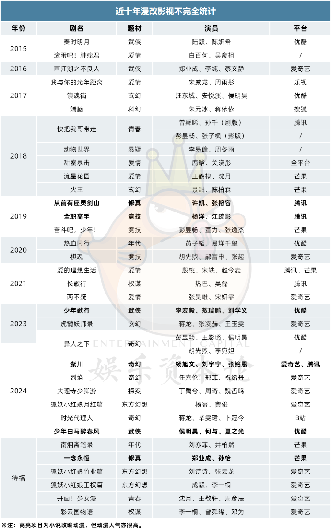 在越来越重视IP的流媒体时代里,动漫IP相较小说IP的改编,对选角更为严苛,毕竟你在文字作品的小说中看不见具象的画面,即便对人物有描述,但每个读者的想象还是会有差距,而动漫IP中的人物形象更为直观地以漫画形式呈现,选角合不合适,还是可以有通过图片与照片比对形成的相似门槛。