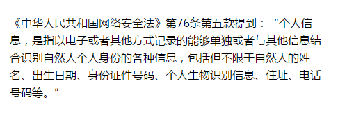 在讨论隐私保护之前,我们必须知道所谓用户隐私保护,它的范围应当如何界定。最直观的感受来说,个人隐私信息应当包括:姓名、身份证号码、手机号码、邮箱,这些最为常用的信息被黑市称为四大件。从更广义的范围来说,个人隐私信息不止于此。