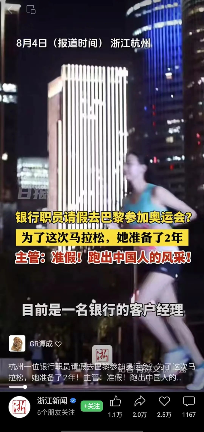除此之外,在本届奥运新闻里还有我国金融从业者的身影。比如,杭州就有一位95年银行客户经理,特意请假去巴黎参加奥运会,为了参加这场马拉松比赛,她已经准备了2年。