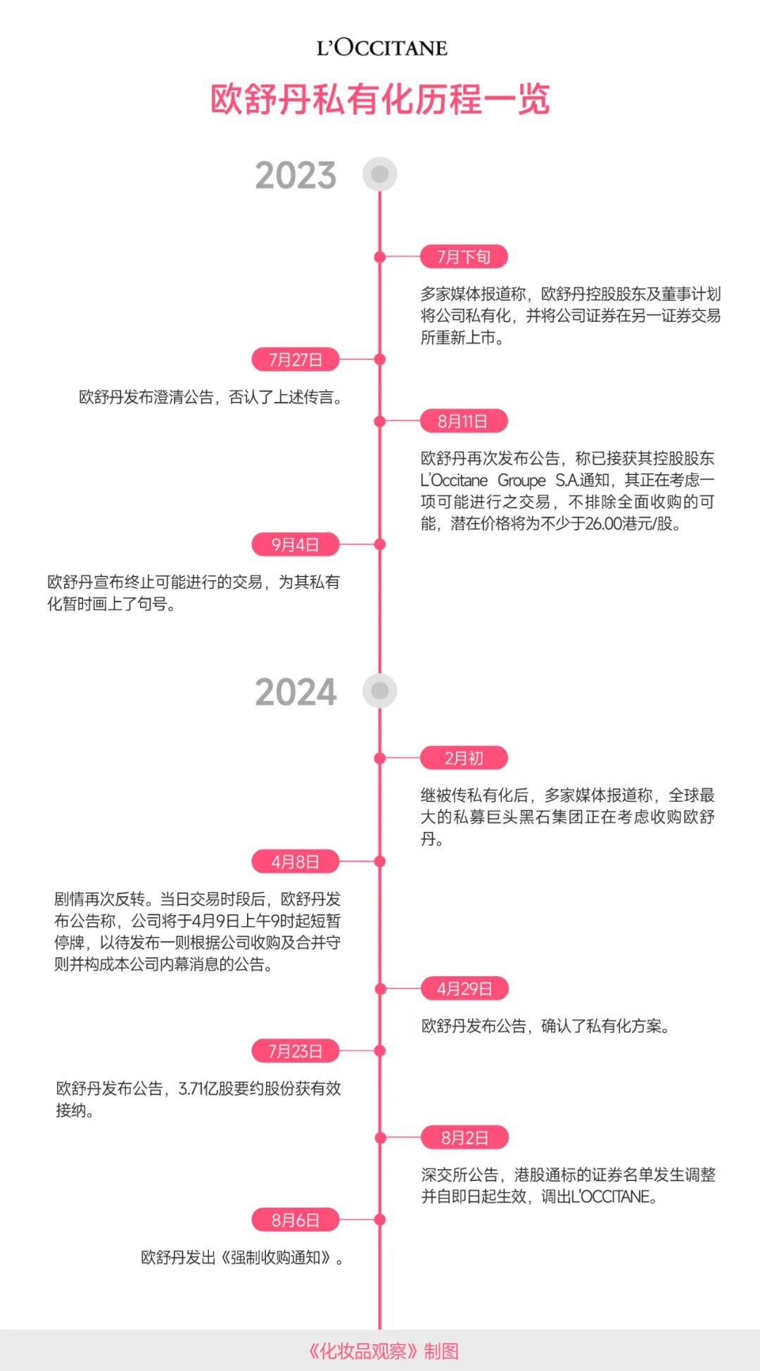 从2023年7月被传“计划私有化”,到如今即将走完私有化流程,欧舒丹“退市”历时1年多。