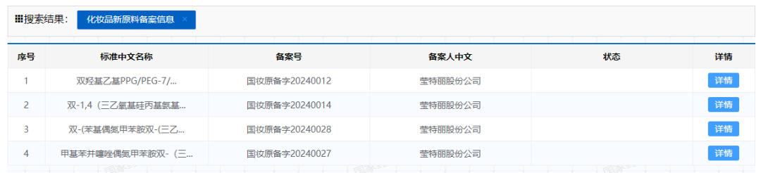 据了解,上述4个新原料均为化学原料,主要作为彩妆、护肤、个人护理品的分散剂使用。