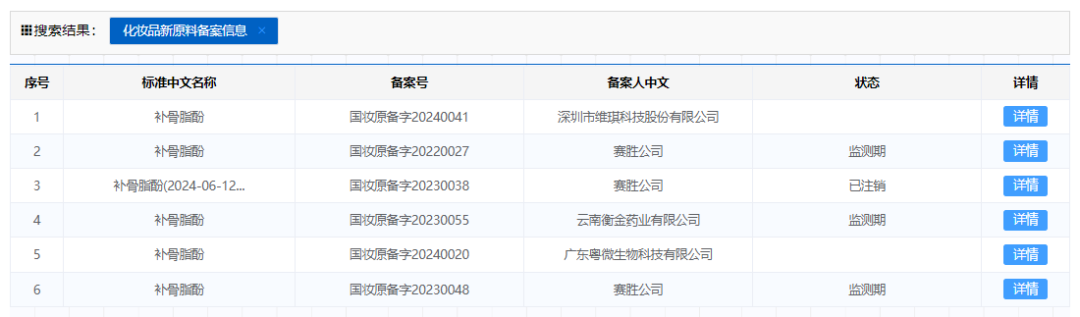 其实,这两年,包括丸美股份、环亚集团、欧诗漫集团、逸仙电商、水羊股份等头部品牌企业,都已备案了新原料。截至目前,贝泰妮共备案了9个新原料,为美妆企业备案新原料数量之最。