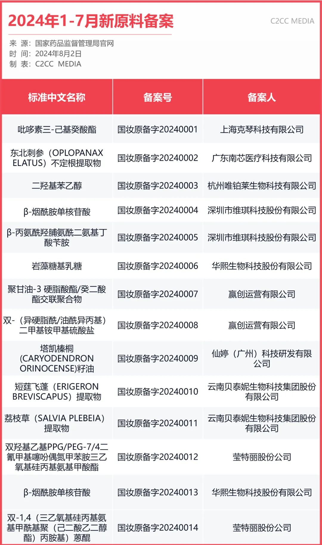 C2CC传媒X新妆梳理发现,今年原料备案有多个比较鲜明的特点: