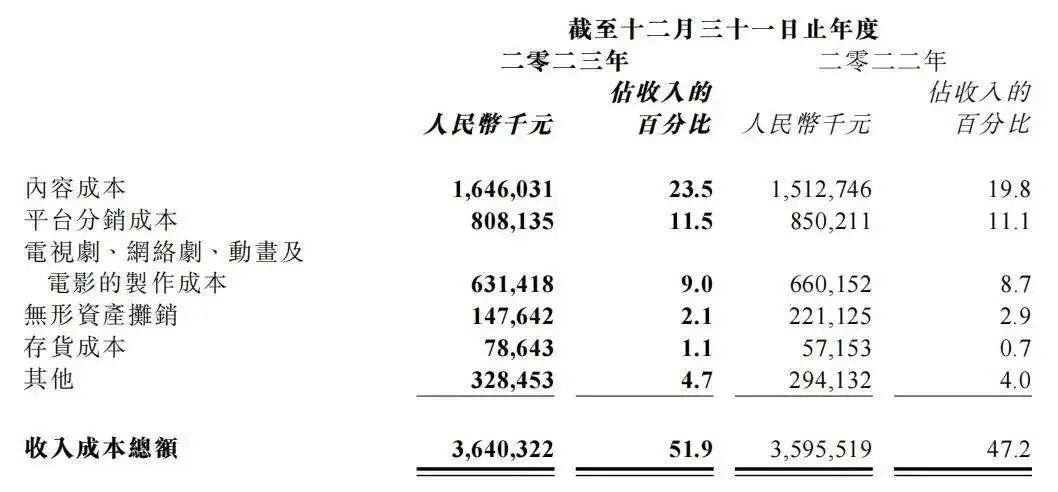再来看看阅文集团各类成本的构成,除了占支出大头的内容成本,平台分销成本8.08亿元,占营收的11.1%;电视剧、网剧、动画及电影的制作成本6.31亿元,占营收的8.7%;无形资产摊销成本1.48亿元,占营收的2.9%等。公司能利用AI来大幅降本增效的,似乎也只有内容成本和电视剧、网剧、动画及电影的制作成本这两个选项了,而这两个选项恰恰就属于内容创作领域。