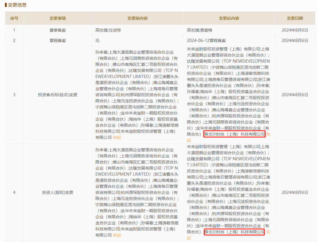 据国家企业信用信息公示系统显示,林清轩公司于今年8月6日发生工商信息变更,新增股东雅戈尔时尚。