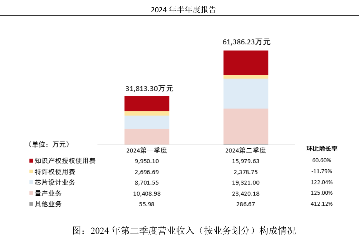 针对自己在报告期内的表现,芯原股份表示,2024年上半年,半导体产业逐步复苏,下游客户库存情况已明显改善,得益于公司独特的商业模式,即原则上无产品库存的风险,无应用领域的边界,以及逆产业周期的属性,公司经营情况快速扭转,业务逐步转好,第二季度业绩较第一季度显著改善。