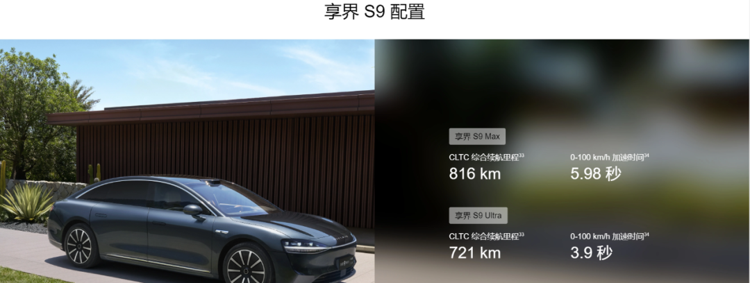 续航方面,享界S9 Max、Ultra均搭载了宁德时代100kWh电池,其中Max版为后驱,Ultra版为四驱,CLTC最高续航分别为816km和721km。