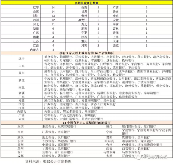 从数量来看,山东省与辽宁省,以拥有14家城商行并列排名全国第一。