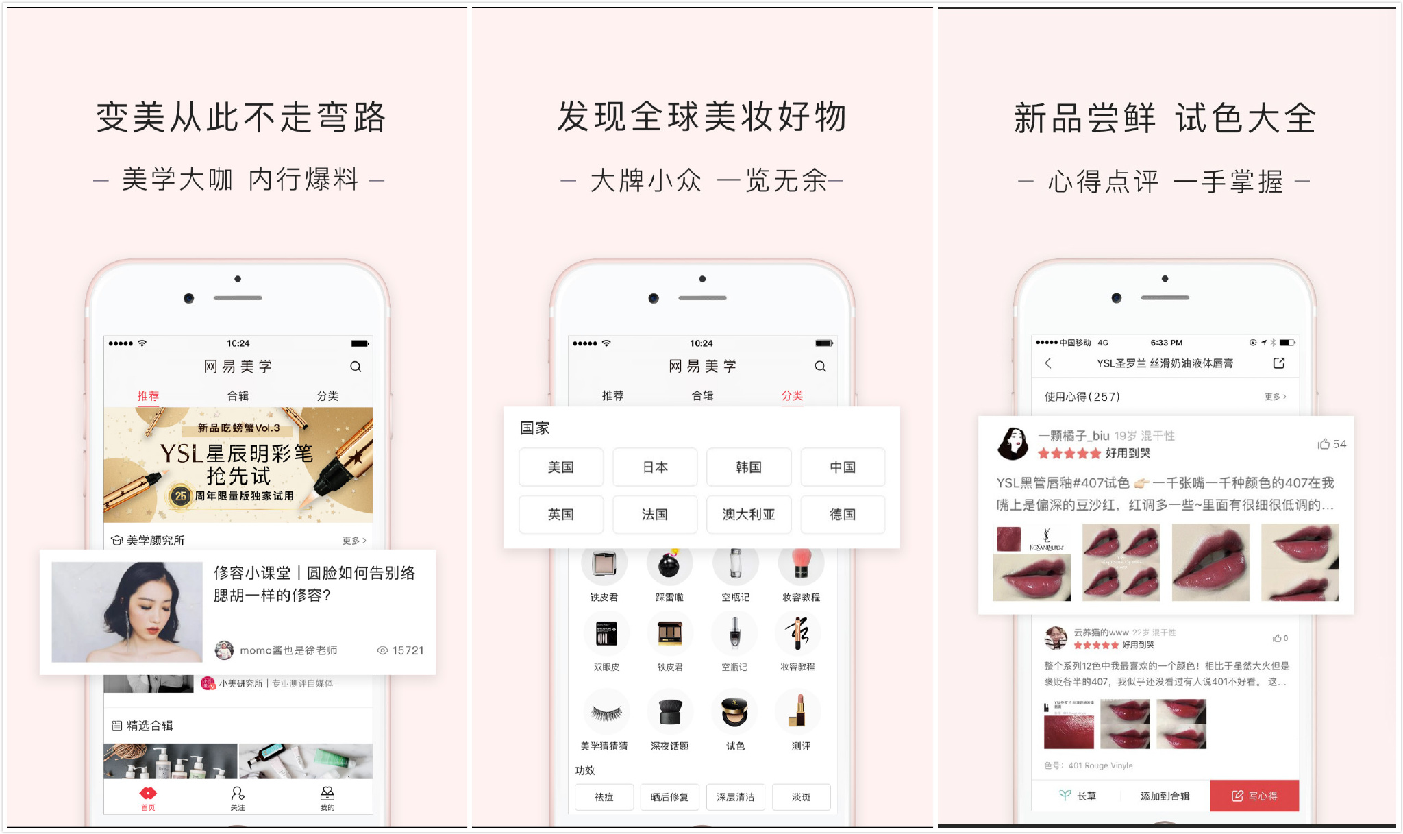 网易美学是网易首个美妆社区,它可以帮助你变得更美。在这里入住了几百位美学大咖,还有时尚达人都在这里分享,还有大量的真是用户分享的干货心得。你可以根据的肤质,查看相似的用户心得,发现适合你的美。你在这里可以精确筛选各个国家的美妆好货,30 万美妆产品库,新品小众一览无余。