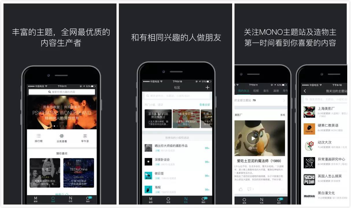 MONO 是高质量内容文化社区,你关心你的喜好与兴趣的内容。当主题有新的内容更新时,MONO会第一时间通过推送告诉你,不错过你感兴趣的内容。每一篇主题的更新,从文字到视频,从画册到音乐,无不精挑细选。不管你是早上醒来,还是下午茶时间,都可以打开猫弄,看上一两篇,精神一定会抖擞的,而且各种新奇的内容一定会让你爱不释手。