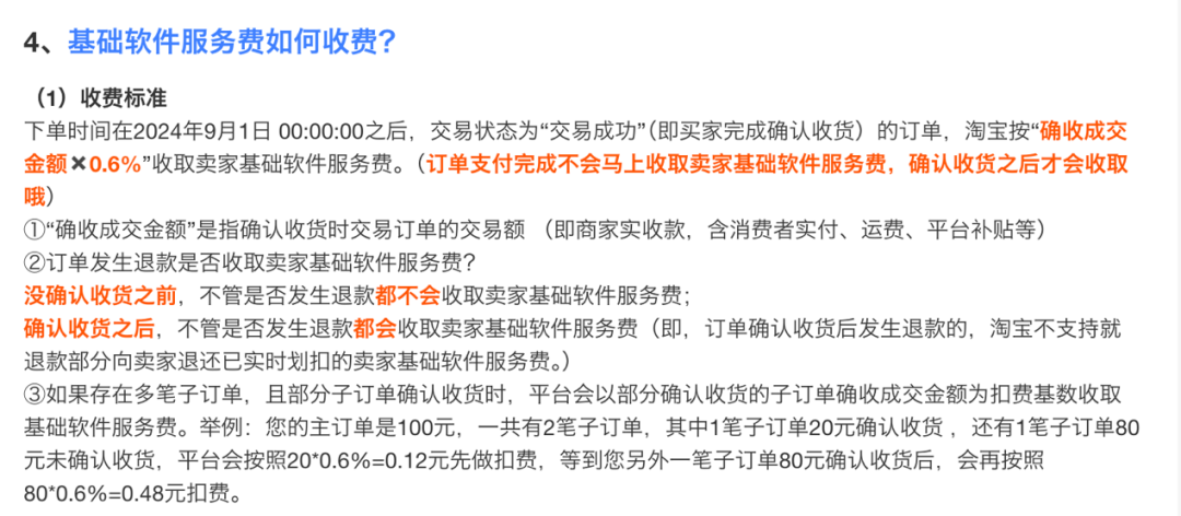 即“淘天将收取软件服务费,费率为每笔订单确收成交金额的 0.6%”,同时“将从今年 9 月 1 日起,取消仅对天猫商家收取的分 3 万、6 万两档年费,而已经支付的 2024 年年费将退还”。