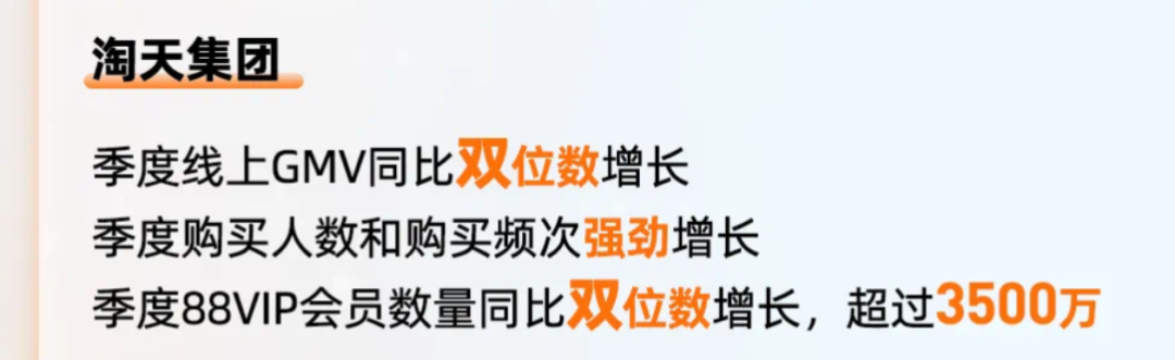 带来的结果不能说不显著,根据 5 月份阿里集团发布的 2024 财年及 Q4 财报来看,本财季,淘宝天猫购买人数和购买频次显著增长,推动线上GMV及订单量实现同比双位数增长。