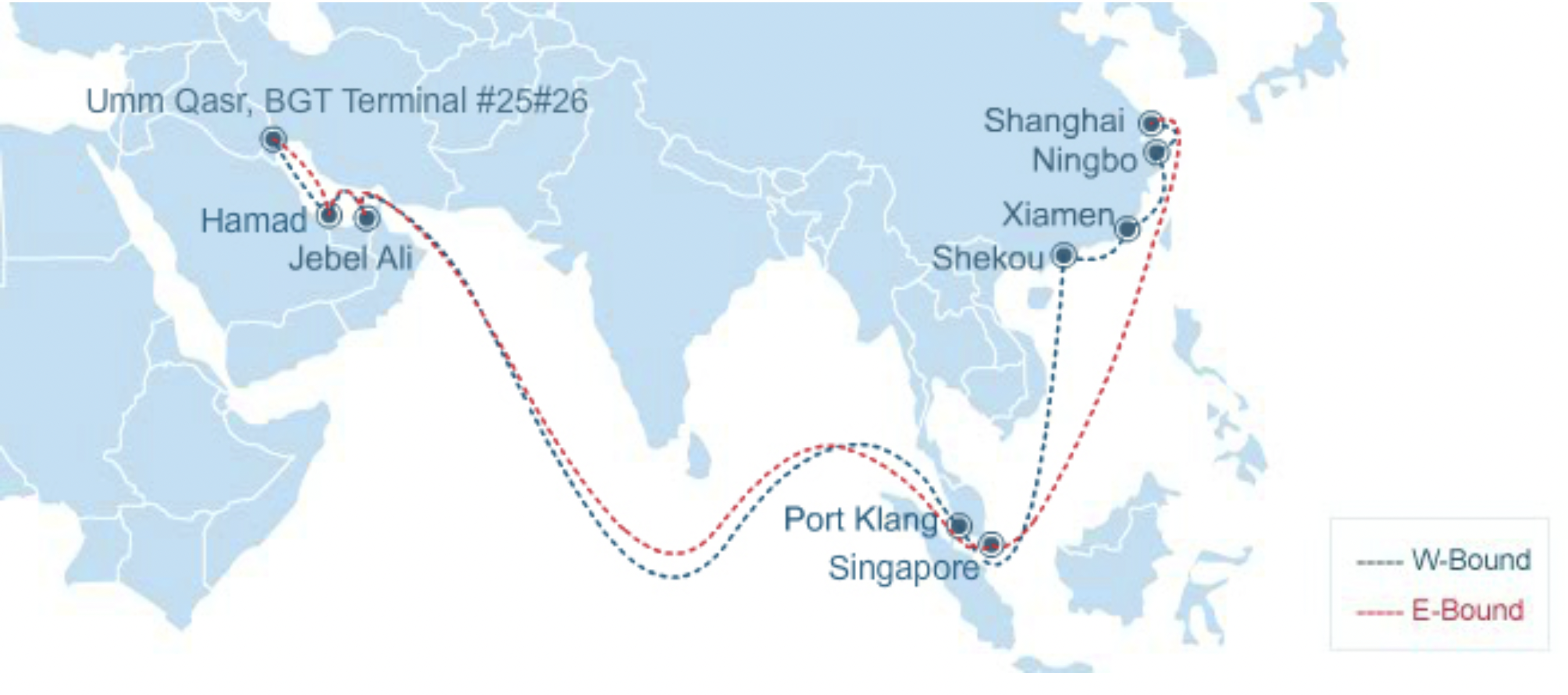 “YM Mobility”号船舶服务于阳明海运“中国海湾快线CGX(CHINA-GULF EXPRESS SERVICE)”航线,该航线连接上海、宁波舟山、蛇口、巴生、杰贝阿里等港口。