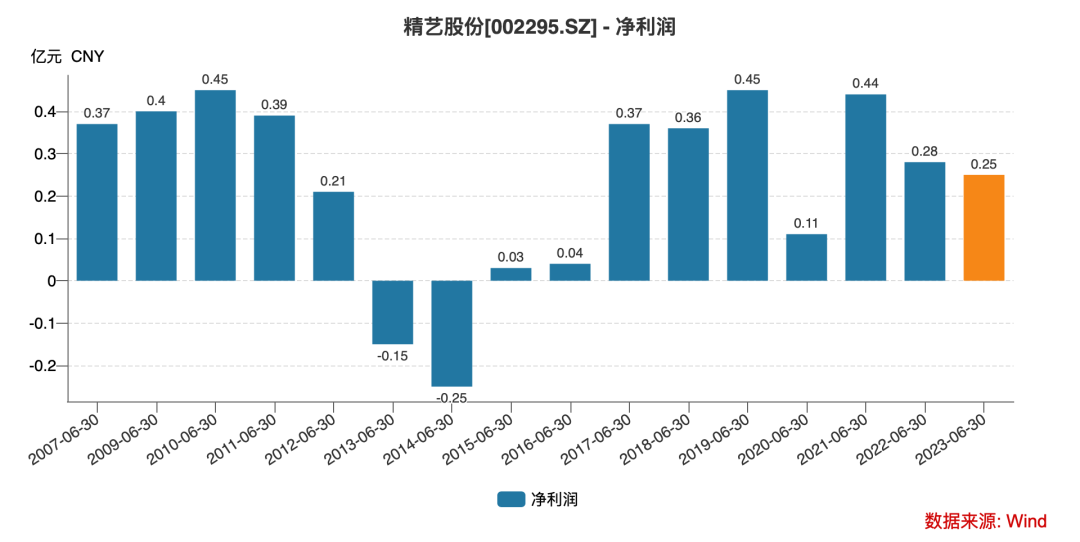 不过上市之后,尤其是2013年-2017年的5年间,精艺股份业绩大起大落,其中2013年、2014净利润接连亏损,2017年净利润又翻了9倍。