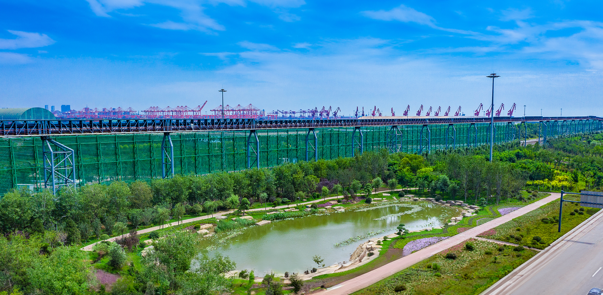 在日照港,“园林式港口”建设理念深入人心。日照港坚持高起点规划、高标准建设“园林式港口”,统筹绿化景观布局,“见缝插绿”“路侧添绿”,串珠成链、融景成园,形成大小公园93个,港内总绿化面积达156万平方米;创造性地将“园林式港口”建设理念融入到泊位改扩建工程当中,在石臼港区南14#、15#泊位前沿传统搬捣通道上,种植2200余株乔木、灌木等绿植,新增绿化面积1.2万平方米。这些绿色植被不仅美化了港口环境,还发挥了固碳减排的重要作用。