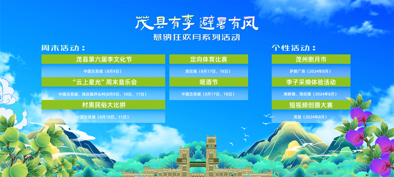 8月9日晚,在歌舞表演《千年果乡·直抵茂州》欢乐氛围中,茂县第六届李文化节暨加多宝村奥会四川赛区开幕式在中国古羌城启动,“茂县有李 避暑有风”惹纳狂欢月系列活动也正式拉开序幕。近年来,茂县以“李”为媒,连续举办茂县李文化节,在市场上树立了良好的品牌影响力,随着成都至茂县动车的开通,便捷的交通也吸引了更多游客慕名而来。