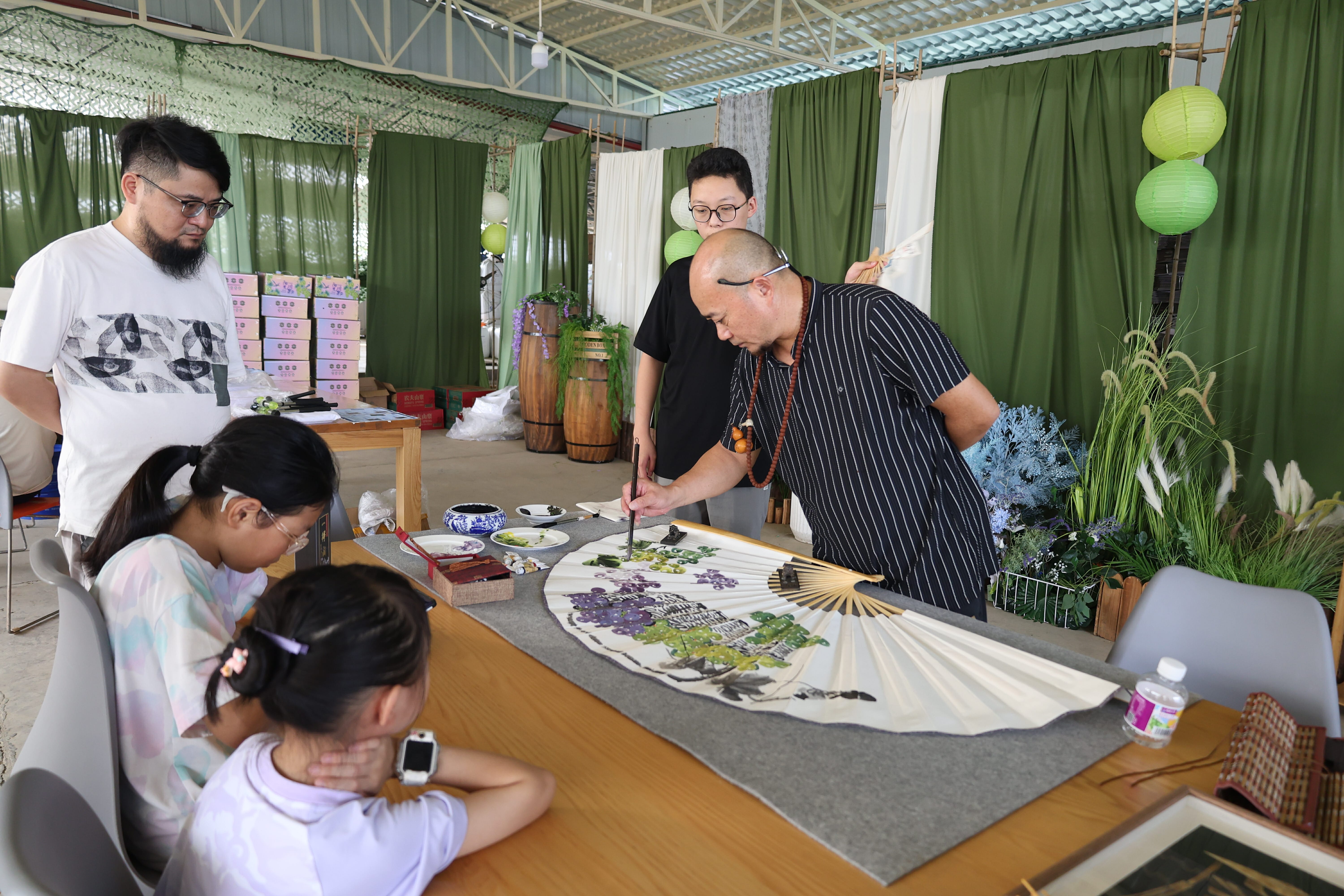 川剧变脸吐火表演、国画师现场绘制扇面葡萄国画等精彩的节目将活动推向了高潮。随后,游客们纷纷走进葡萄园,亲手采摘葡萄,体验非遗项目,好不热闹。