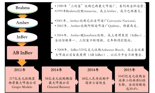 随后三人一发不可收拾,从选择最熟悉的消费品领域——啤酒领域开始,通过一系列鲸吞式的收购和随后的铁血管理,这三剑客终于成了南美啤酒业的绝对统治者。