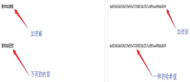 箭头所指的两行由数字字母组成的哈希值完全一样,却属于不同的文档