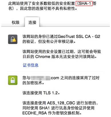 浏览器对SHA-1算法SSL证书网站亮出警告