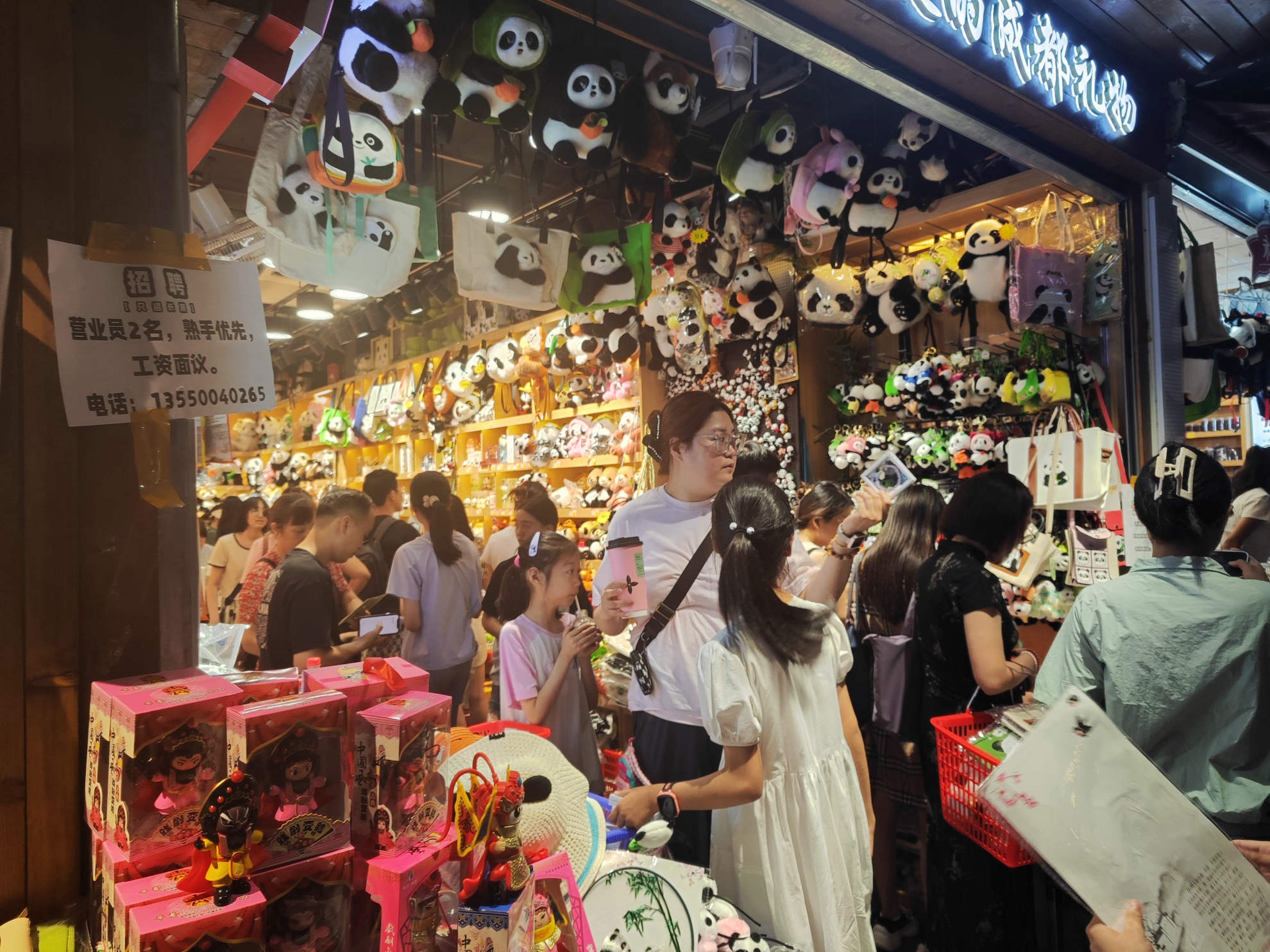 不少餐饮企业都敏锐地抓住了风口,成都大局超吉餐饮就是其中之一。该餐饮公司在奎星楼街开了四家铺子,渣渣牛肉、脆皮鱼还有冒烤鸭都是游客的心头好,每天晚上,店门口都大排长龙。