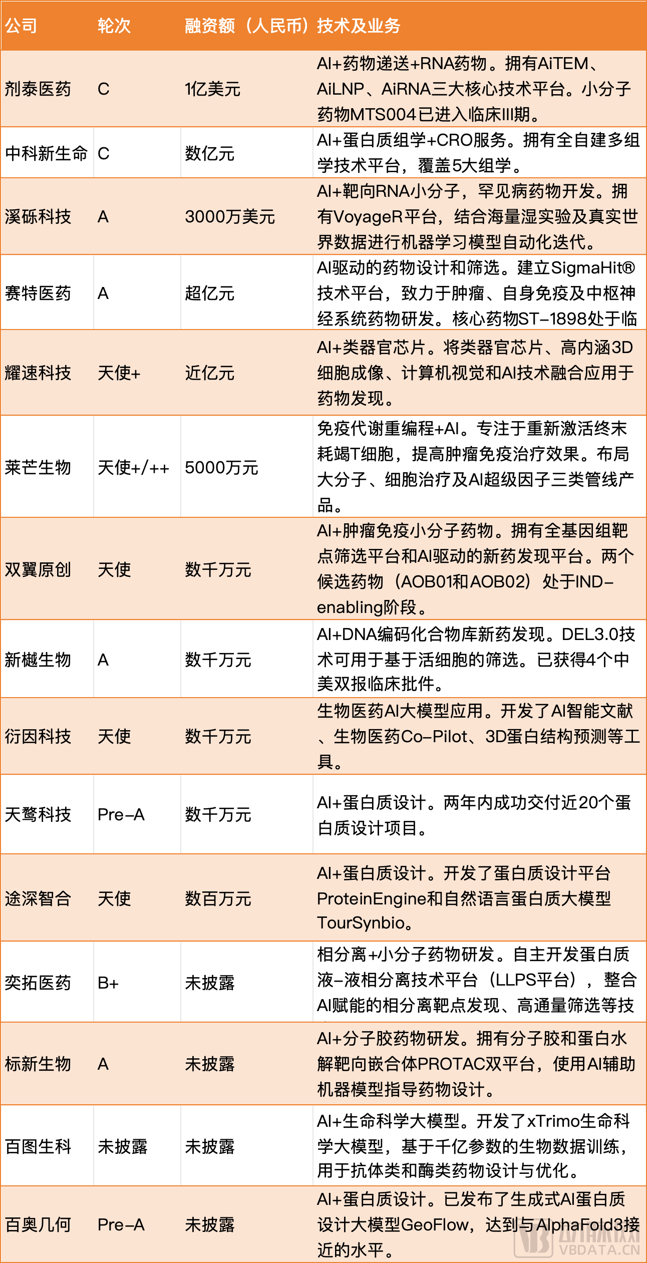 2024年上半年国内AI制药融资公司,整理自公开资料