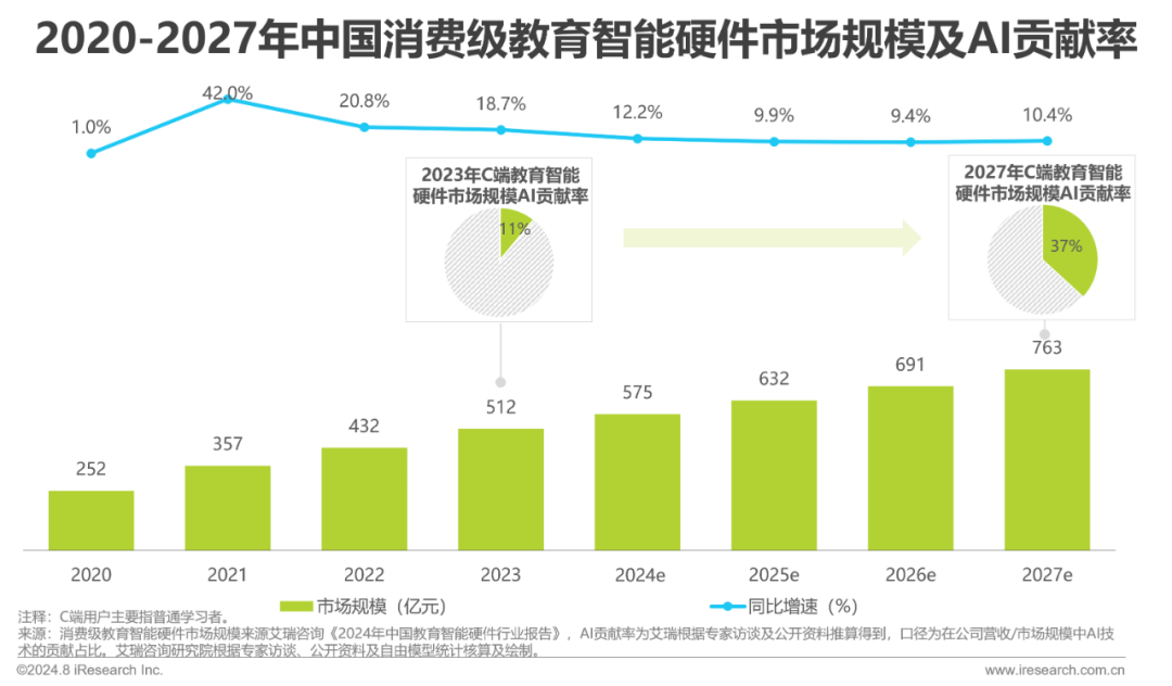 2023年教育智能硬件市场规模512亿,AI贡献率11%