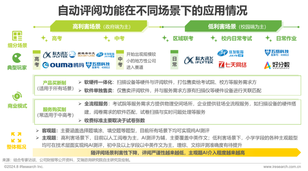 产品买断与服务购买为主要商业模式,场景利害性决定AI评阅介入程度
