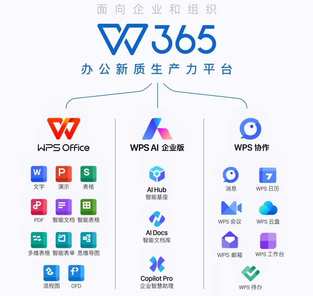 金山办公以WPS Office为核心,推出了包括WPS 365等在内的多款AI产品,试图构建一个全场景的智能办公生态。
