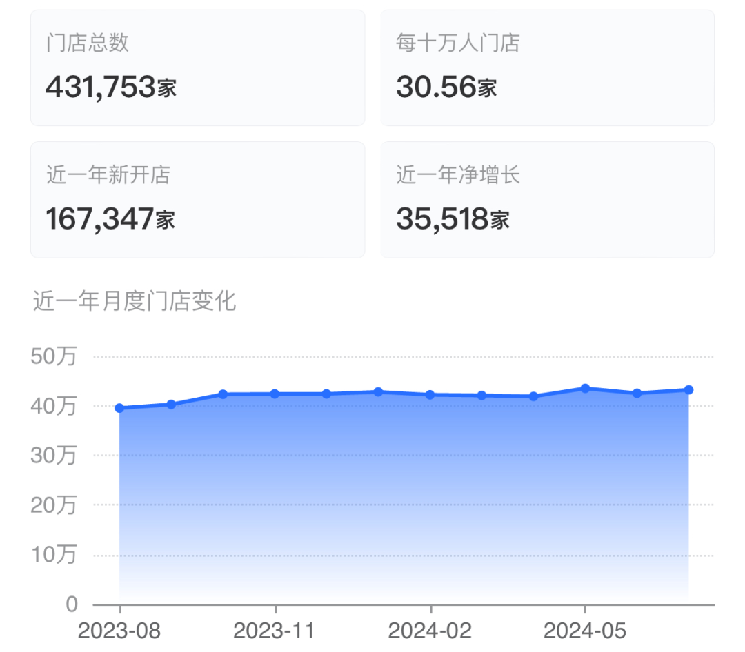 事实上,新茶饮行业一直是加盟“重灾区”,窄门餐眼最新数据显示,近一年新茶饮行业新开门店量超16.7万家,净增长超3.5万家,闭店量超13万家。