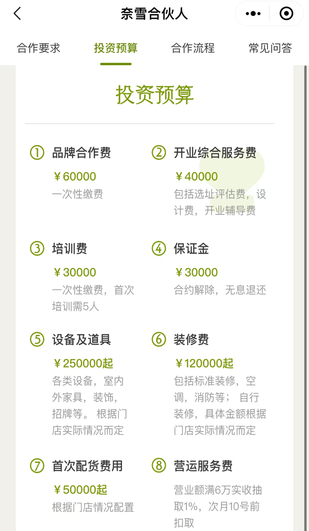 除此以外,部分茶饮品牌通过缩小门店规模的形式降低加盟门槛,比如奈雪从90平米降到了40平米,投资预算也从98万元降到了58万元。