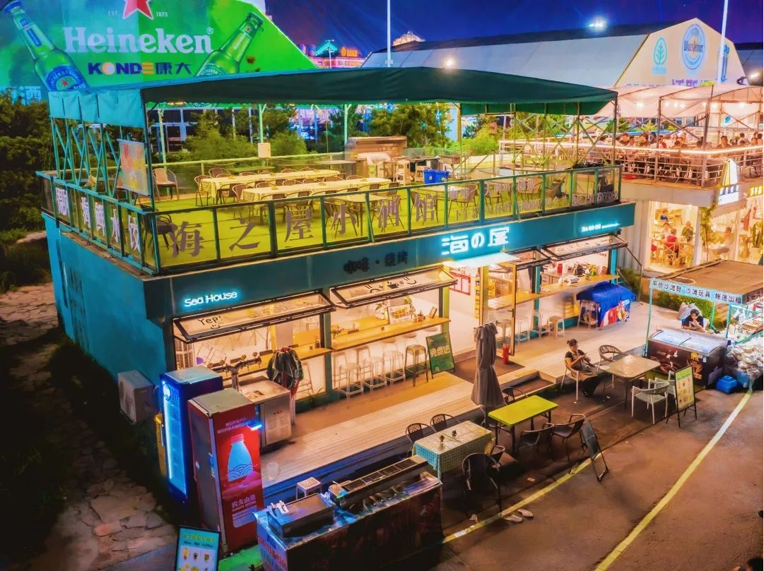 作为深受市民游客喜爱的城市公共空间,金沙滩啤酒城拥有多样的运动和游乐场地设施。海边篮球场旁边的巷往体育驿站集体育休闲娱乐、简餐轻食、网红打卡为一体,驿站内设立足球赛事第二现场,球迷们在这里可以尽享精彩赛事直播。