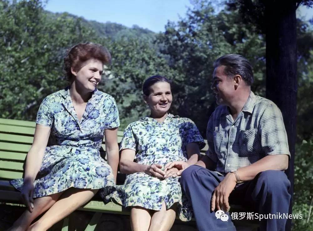 宇航员瓦莲金娜·弗拉基米罗夫娜·捷列什科娃和家人在高加索