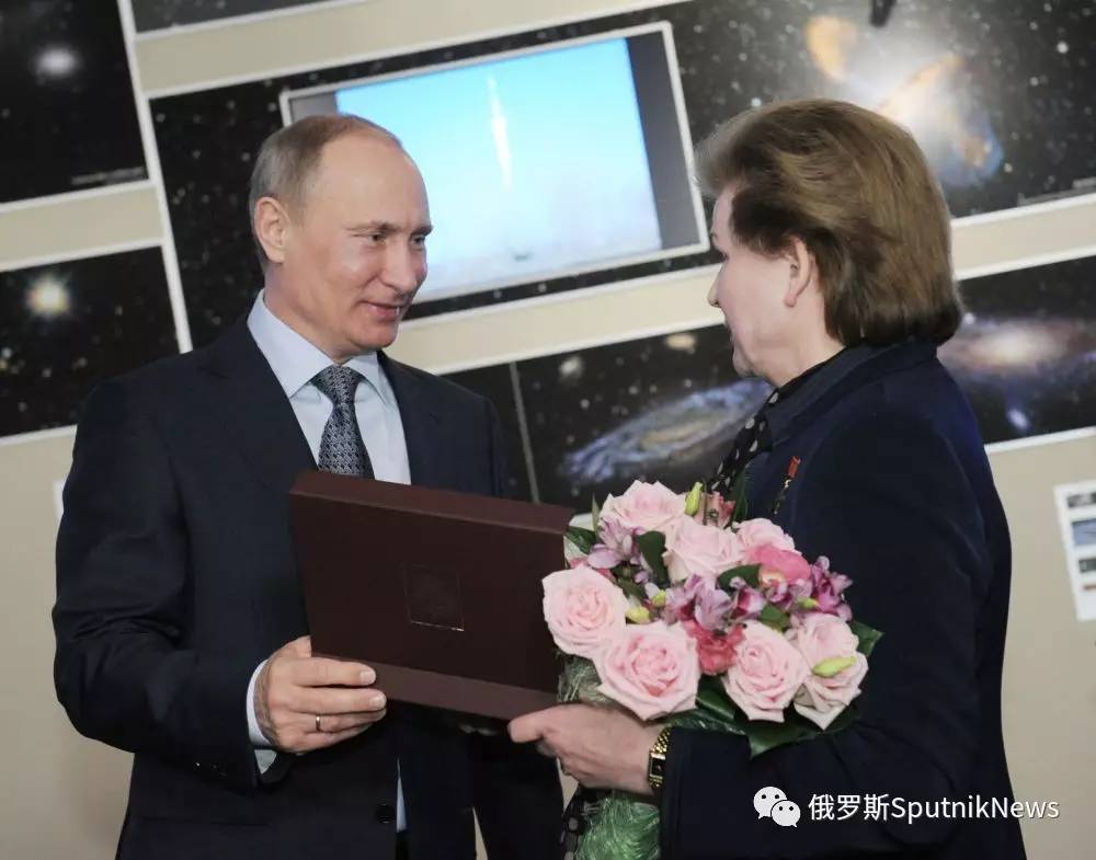 弗拉基米尔·普京向宇航员瓦莲金娜·捷列什科娃授予以尤里·加加林命名的政府奖