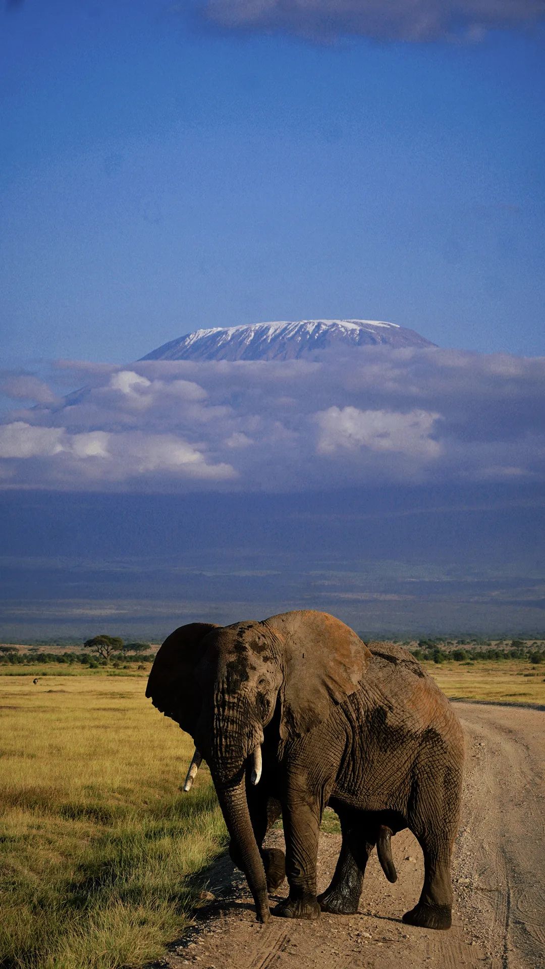 乞力马扎罗雪山下的大象。图 / 受访者赵菱菱提供