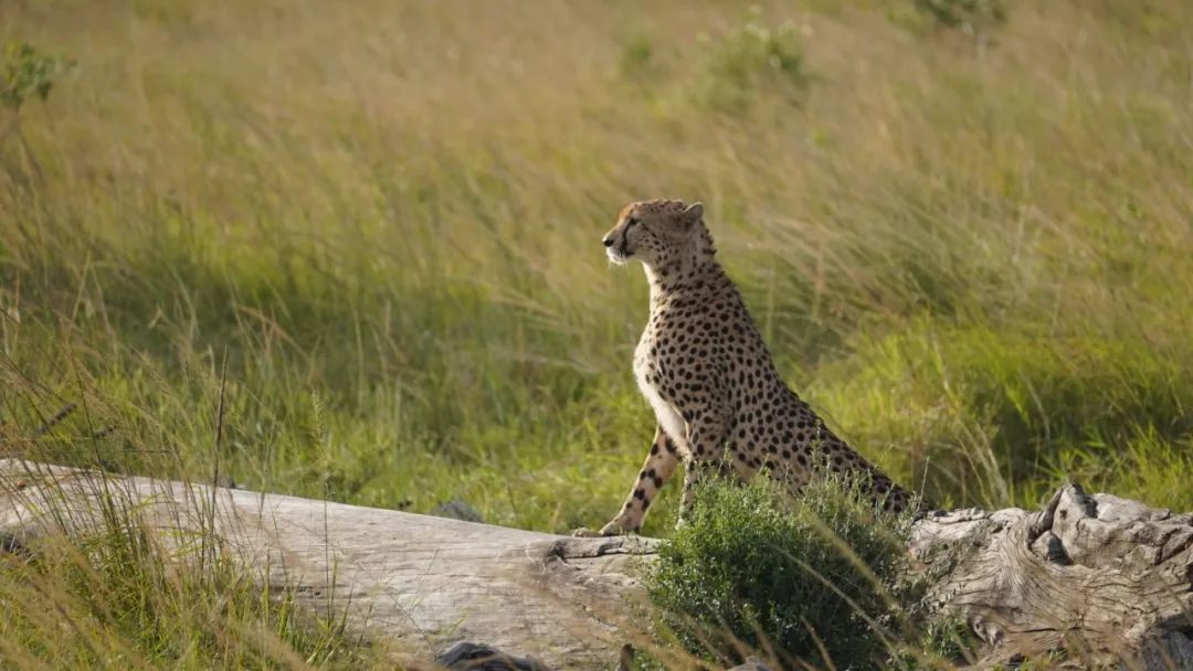 突然,草丛轻微的动了一下,人们立刻转头激动地轻声询问,“看到了吗”。赵菱菱瞪大了眼睛找,一片长长的绿草中间好像混着一只毛茸茸的小耳朵,“是只猎豹!”
