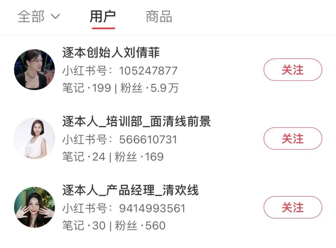 此外,逐本除了刘倩菲的创始人IP外,逐本的产品经理、培训部门都搭建了逐本公司员工账号矩阵,团队在消费者面前进行高透明度呈现。
