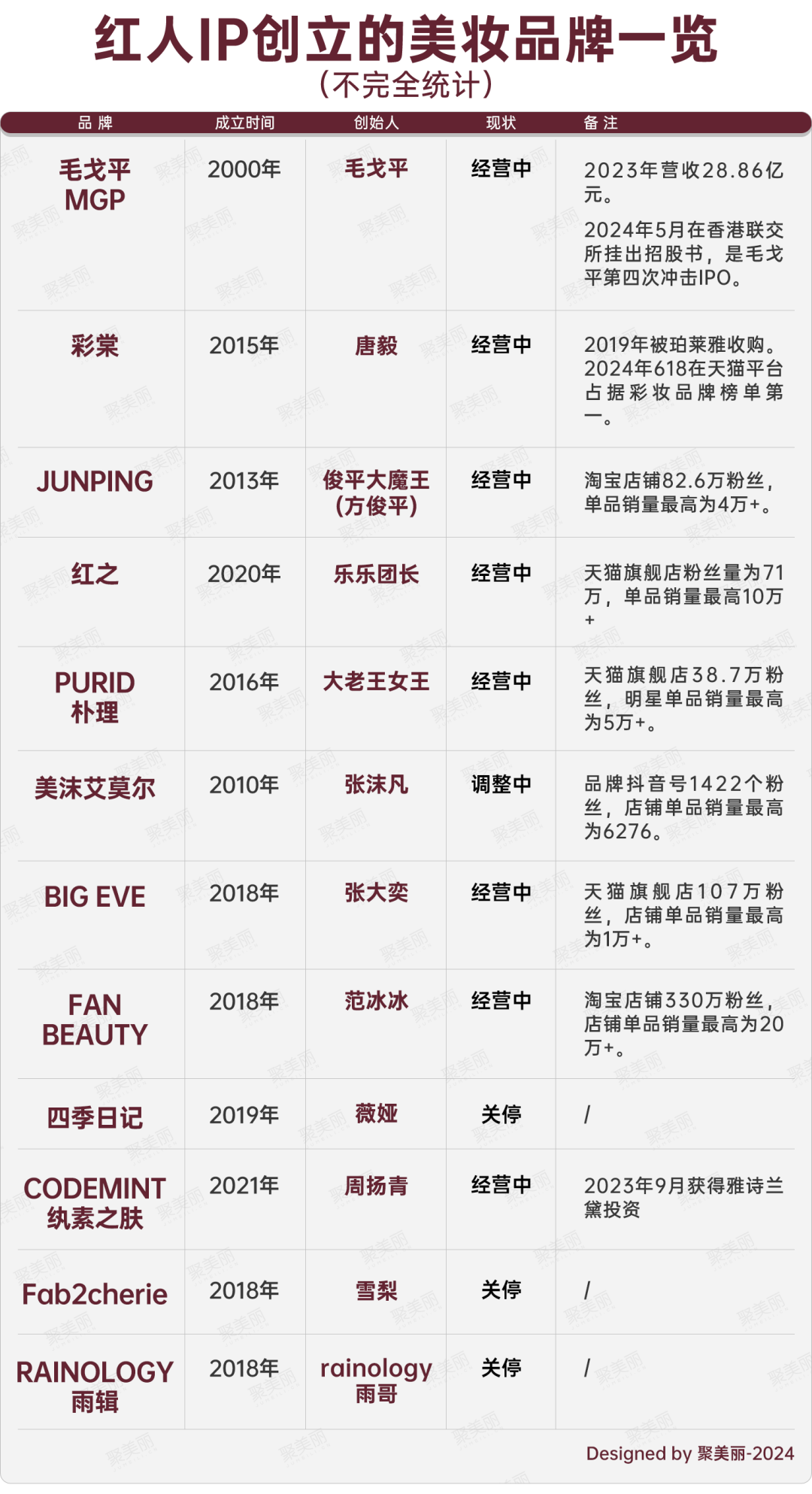 社媒时代初期,红人IP渐起,其中不乏依托红人的个人IP创立了公司或者以合伙人身份组建公司的情况,同时也出现了一批由红人创始人背书的品牌。