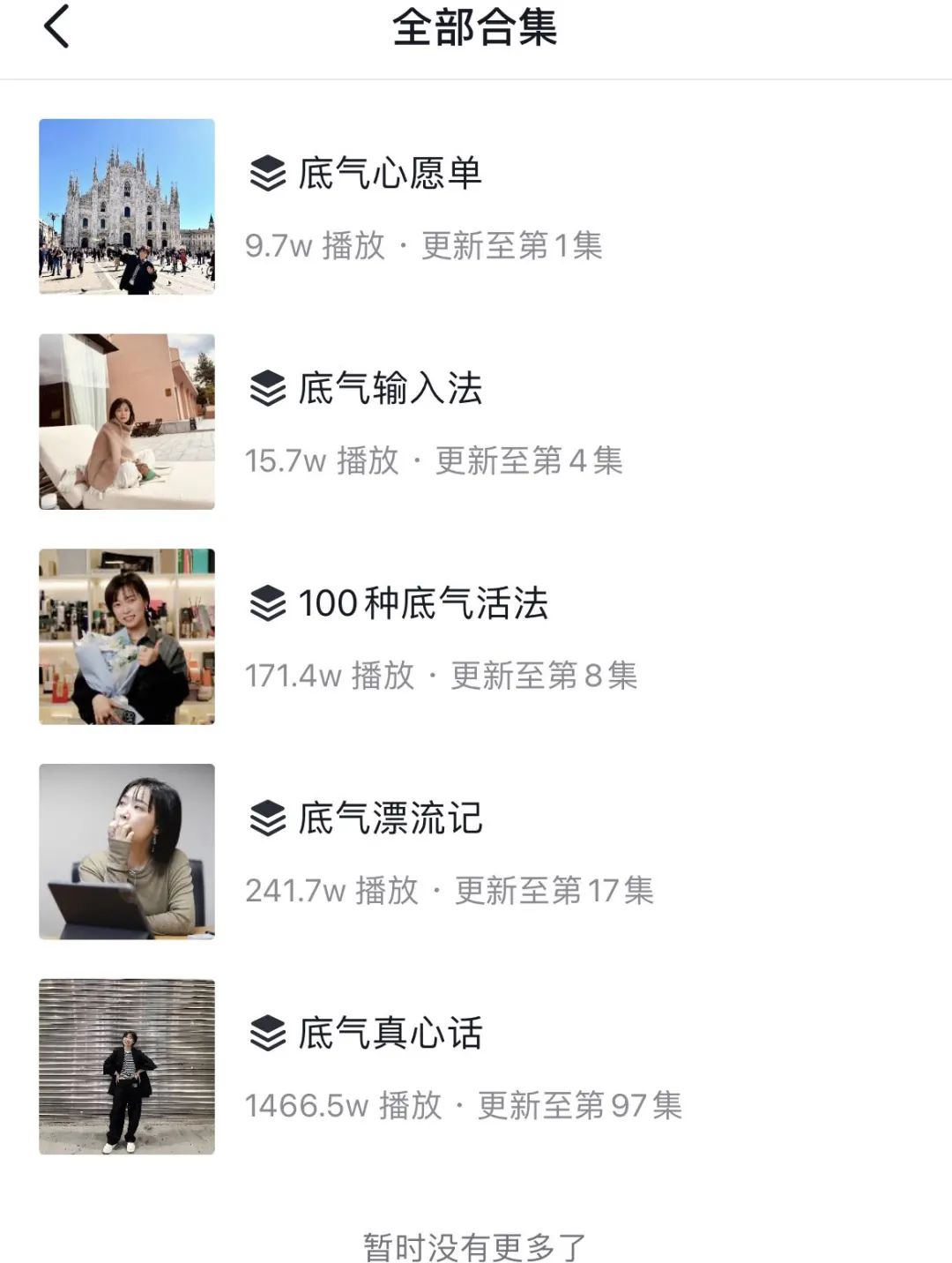 其中,“底气真心话”合集当中共97集,播放量为1466.5万。