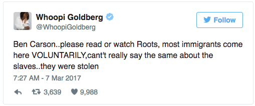 这一言论随后在社交媒体上引起轩然大波。反对者们认为,被奴役的非洲人并不是自愿来到美国,而且在之后的数百年都被剥夺了自由。美国全国有色人种协进会(NAACP)也谴责了卡森。