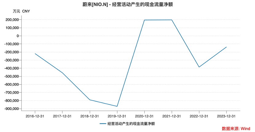 蔚来在2023年也进行了一系列的动作来优化经营活动产生的现金流,包括但不限于成本优化(毛利率高),对供应链延长应付款账期等等,使企业在一个“内卷化”加剧的环境中能尽量少失血,这是非常难得的。