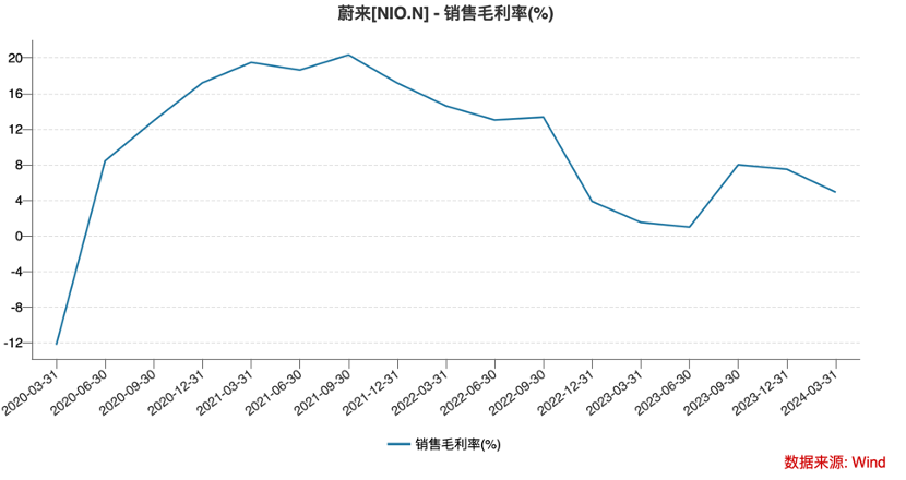 在上游原材料价格下行周期内,2023年前三个季度蔚来毛利率确实出现了一轮反弹,只是其后毛利率又重新折返,开始转跌。
