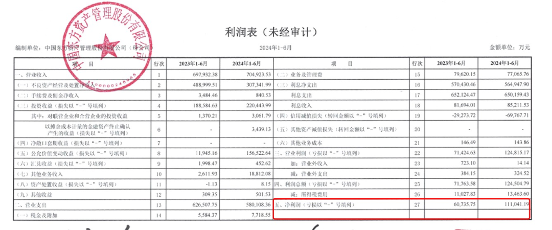 2024年上半年,东方资产营业收入70.49亿元,同比微增0.99%;净利润11.1亿元,同比增长82.9%。从业绩来看,东方资产上半年盈利能力处于上升状态。
