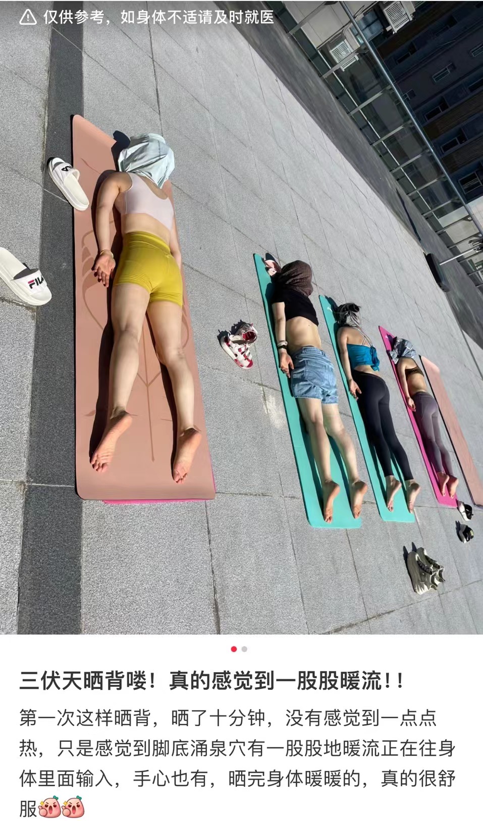 越来越多崇尚养生的年轻人加入了这场免费的“天灸”,以往常挂在嘴边的“防晒才防老”被抛诸脑后,一听说晒背能减肥、能祛湿,便纷纷加入了“随地大小趴”的队列中。