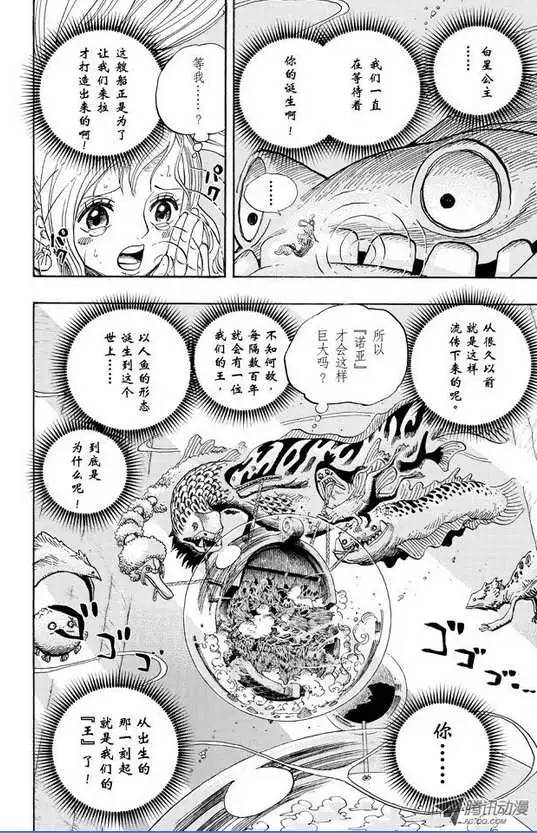 鱼人岛的居民倒是不用担心被水淹死,但是诺亚也和圣经里的形象一样:巨大的船,并且是个到达约定之日才使用的工具。同时宝树亚当也在鱼人岛和阳树夏娃产生了配对,根据圣经描写亚当和夏娃的后代都被洪水吞没,唯有诺亚一家人幸免于难。也许草帽海贼团和鱼人会遇到极大的危机,而扭转战局的关键就是诺亚方舟,如果经过了这次劫难届时一定会有鸽子带来橄榄枝的喜讯,世界和平。