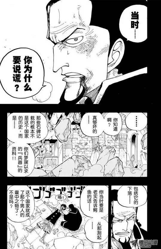 在阿拉巴斯坦篇,剧情正式引入了『历史文本』这一设定。罗宾口中的历史文本让寇布拉感到震惊,世人所传颂的历史竟然只是世界政府编造的谎言?当时的罗宾知道历史文本散落世界各地,误认为其中只有一块是记录着真正历史的历史文本。