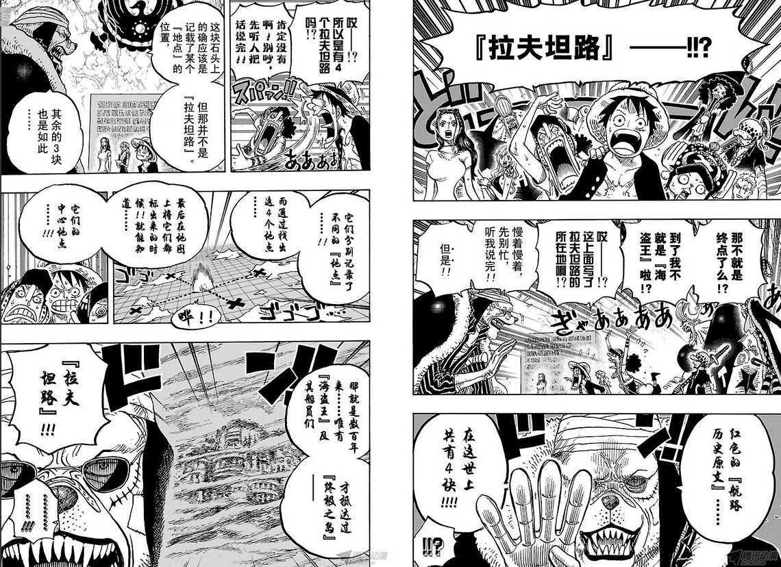 值得注意的是,有一块航路历史文本至今下落不明也就是说除了海贼王船员没有人见过它,而当罗杰等人到了伟大航路的终点才知道了拉夫德鲁的存在。大胆猜测最后一块航路历史文本应该存在于终点之岛上,库罗克斯的话理解为到达了终点之岛也就相当于找到了拉夫德鲁。