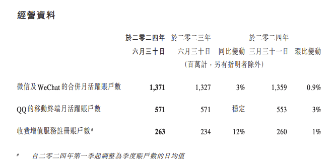 腾讯控股:二季度微信及WeChat合并月活跃账户数13.7亿,同比增加3%