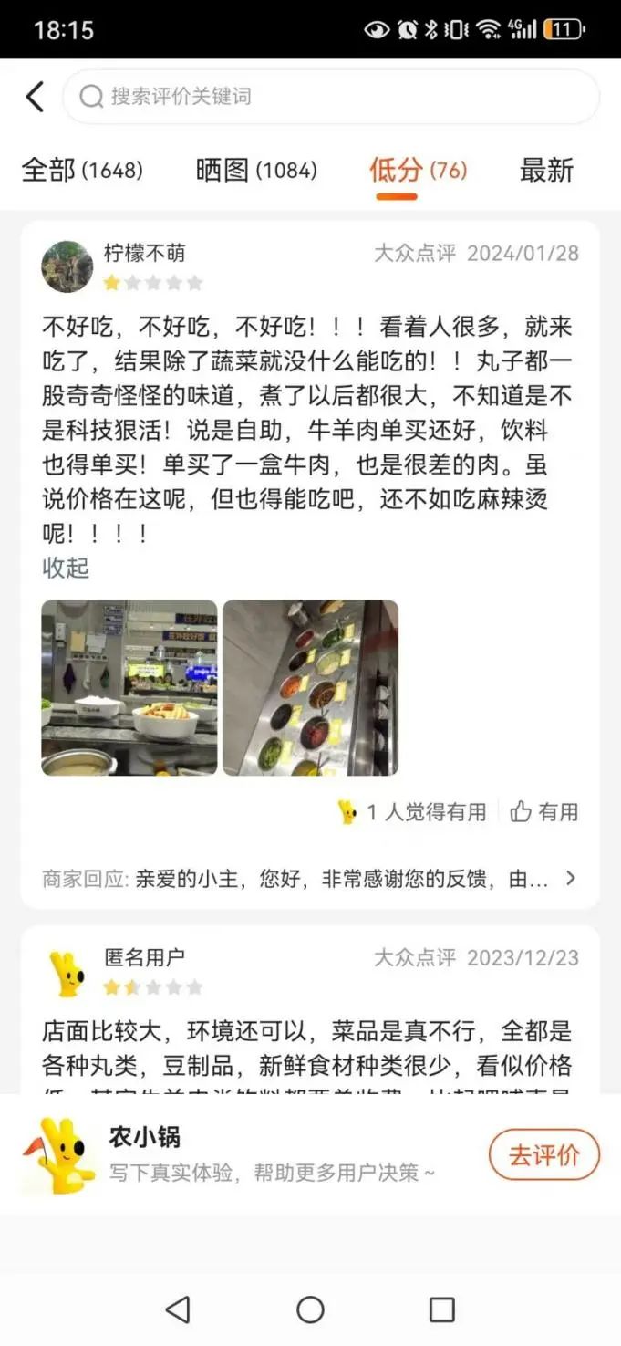 打着“在外吃好饭,就选农小锅”招牌的农小锅,被网友诟病其菜品种类少,“除了蔬菜没什么可吃的”,“还不如吃麻辣烫”。