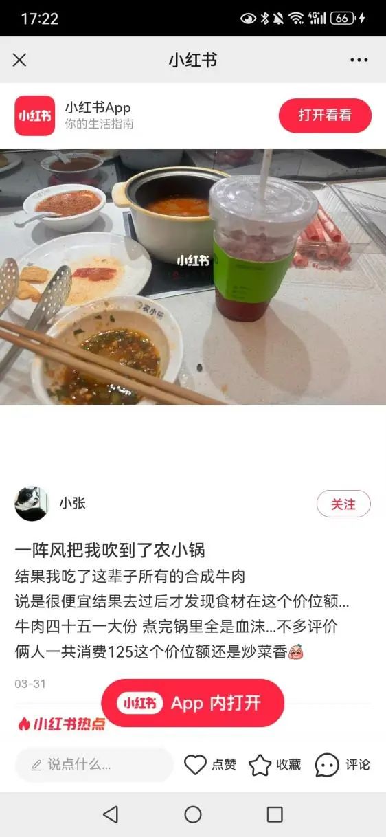 在小红书关于“旋转小火锅脏不脏”的话题下面有高达423万+篇笔记,“小火锅踩雷菜品”“小火锅合成肉”的话题下有近2万篇笔记。